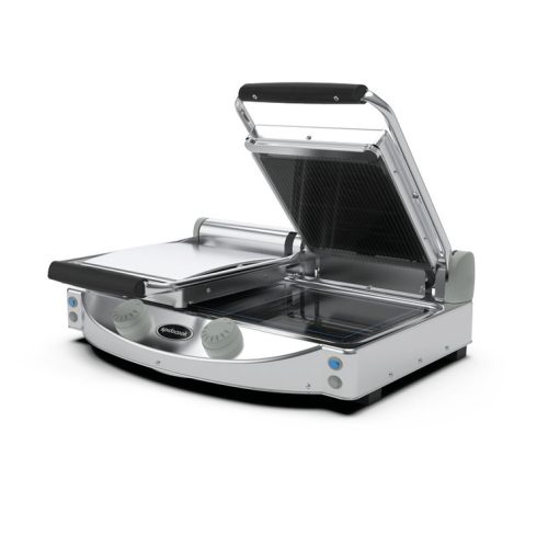 Dupli ručni roštilj s rebrastom crnom gornjom i glatkom crnom donjom pločom