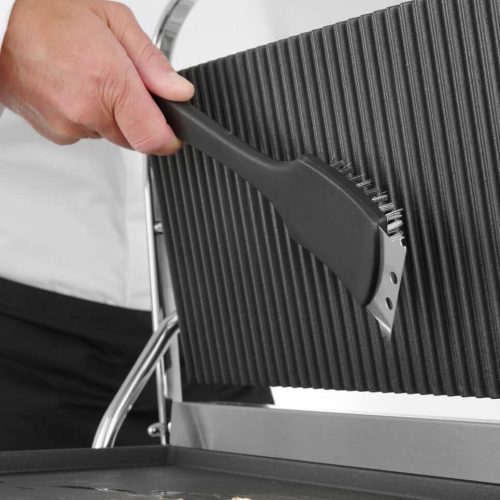 Četka za roštilj s 8×8 čekinja izrađenih od 18/10 nehrđajućeg čelika s dugačkom drškom i ravnim čeličnim dijelom za čišćenje glatkih grill ploča. Idealne su za struganje izgorenih namirnica ili masti s rešetki i ploča. Čiste grill rešetke bez izgorjelih ostataka dati će najbolje rezultate kuhanja.