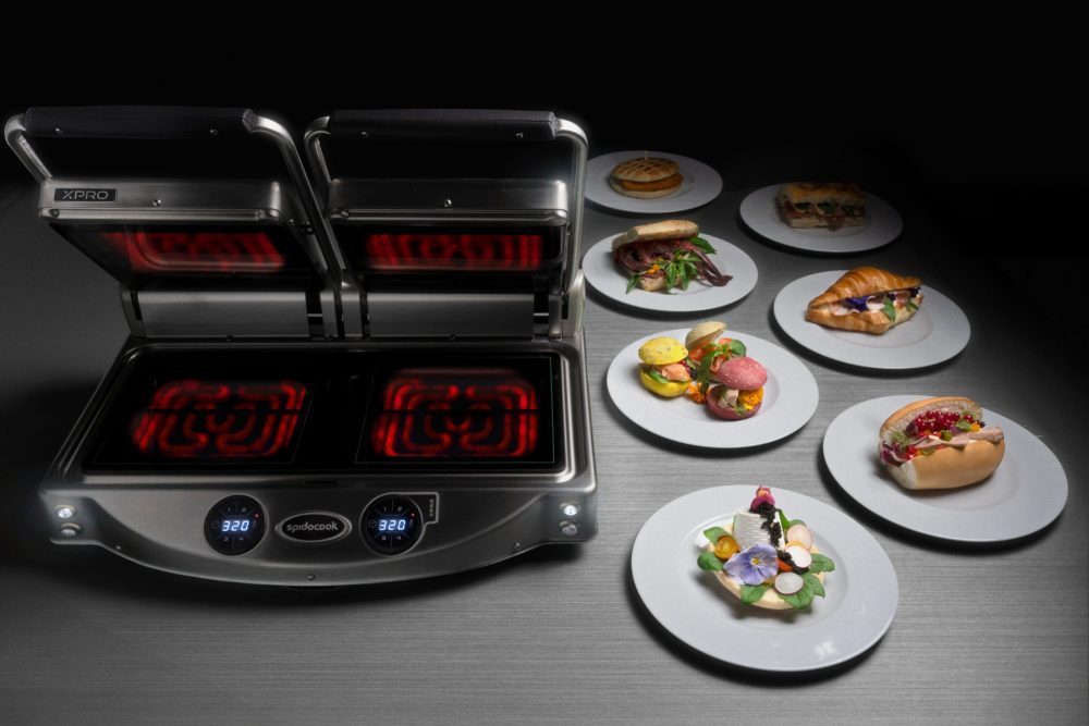 Dvostruki ručni roštilj s rebrastom crnom gornjom i glatkom crnom donjom pločom-Spidocook