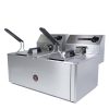 Električna friteza kompaktnih dimenzija kapaciteta 3 litre s termostatom i mogućnosti namještanja temperature od 0 do 190 stupnjeva C. Kvalitetna izvedba u nehrđajućem čeliku, sigurnosni termostat i LED indikator temperature.
