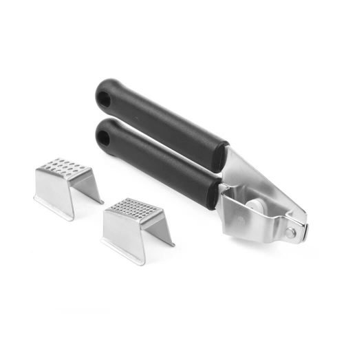 Robusna gnječilica za krumpir izrađena od nehrđajućeg čelika s polipropilenskom ručkom koja lijepo sjeda u ruku. Promjer gnječilice je 95 mm, a visina 230 mm. Može se prati u perilici posuđa.