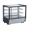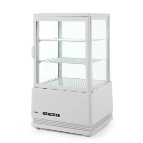 Hlađena, osvijetljena vitrina kapaciteta 100 litara s 2 podesive žičane police. S kliznim stražnjim vratima i sustavom protiv kondenzacije na staklu.