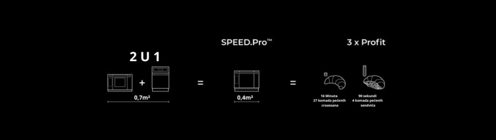 UNOX SPEED.Pro™ je profesionalna pećnica koja kombinira konvekcijsko i mikrovalno pečenje u jednom kompaktnom uređaju. Idealna je za brzo pečenje, regeneraciju i posluživanje raznih proizvoda – od croissanta do gotovih jela. Zahvaljujući naprednim tehnologijama i intuitivnom upravljanju, značajno štedi vrijeme i energiju u svakodnevnom radu.