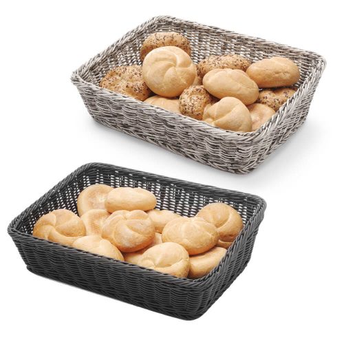 Set 2 košare za kruh s kromiranim stalkom. Košare su izrađene od polipropilena i perive su u perilici, a konstrukcija im je izrađena od žice nehrđajućeg čelika.