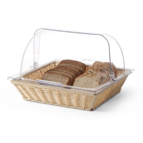 Pravokutna košara za peciva i kruh dimenzija 400×300 i visine 120 mm dostupna u sivoj ili crnoj boji.