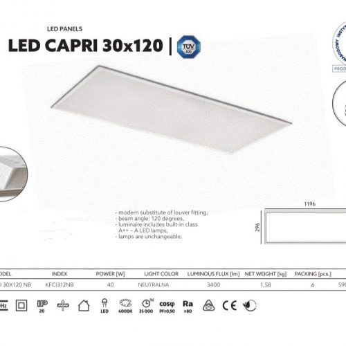 LED panel 30X120 40W 4000K Capri garancija 5 godina