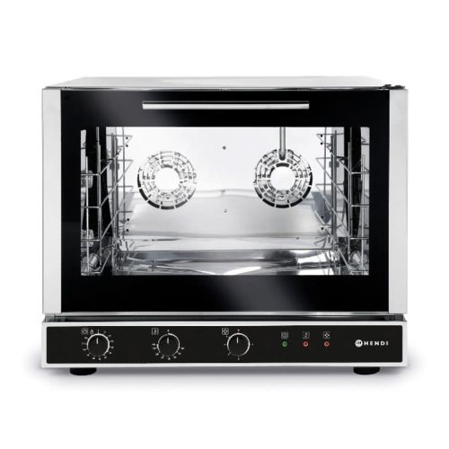 HENDI Konvekcijska pećnica s roštiljem i ovlaživačem NANO je savršena pećnica kada je prostor ograničen, ali kvaliteta mora biti na najvišoj razini. Komora pećnice je velika i ima mjesta za 4 pleha dimenzija 450×340 mm (uključeni). Postavljanje pećnice jednostavno je s velikim gumbima, a vlažnost se lako podešava pritiskom na gumb.