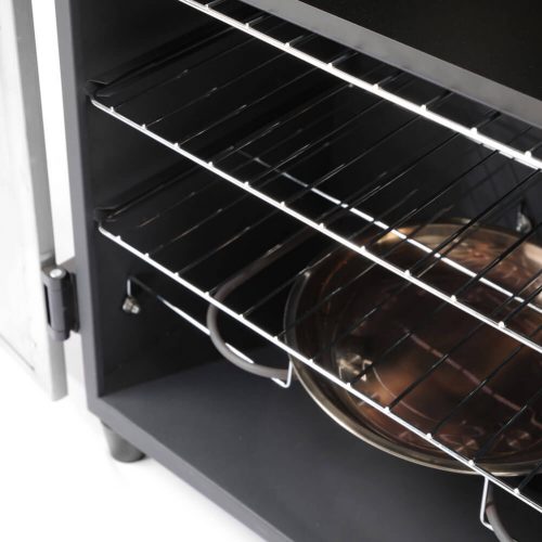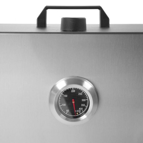 Idealna za dimljenje raznih namirnica poput ribe, govedine, šunke i povrća, ova pećnica ima 3 rešetke i 3 kuke za meso. Temperatura je podesiva pomoću termostata koji je integriran u dvostruko izoliranim vratima, a na stražnjoj se strani nalazi otvor za vrući zrak.