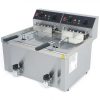 Samostojeća električna friteza sa zavarenim spremnikom kapaciteta 14 litara i ventilom za jednostavno pražnjenje ulja. Trofazno napajanje te raspon temperature od 0 do 190 stupnjeva C. Kućište je izrađeno od kvalitetnog nehrđajućeg čelika, a uređaj ima sigurnosni termostat i LED indikator temperature.