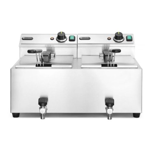 Samostojeća električna friteza kapaciteta 12+12 litara s dvije košare dimenzija 220x300x100 mm i naglavnom kontrolnom pločom. Maksimalni output po satu je 50 kg, uz kapacitet po ciklusu 1,7 + 1,7 kg.