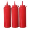 Set 3 žute dispenser boce jednake zapremnine izrađene od polietilena, s čepom od polipropilena koji pomaže u održavanju svježine umaka i postizanju bolje higijene. Dostupno u više dimenzija. Može se prati u perilici posuđa