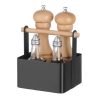 Drvena kutija s 4 odjeljka. Za donošenje pribora za jelo, ubrusa i dozatora na stol. Na ploču se može pisati kredom. Dimenzije 210x150x150 mm