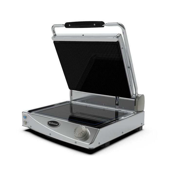 Srednji ručni roštilj s rebrastom crnom gornjom i glatkom crnom donjom pločom